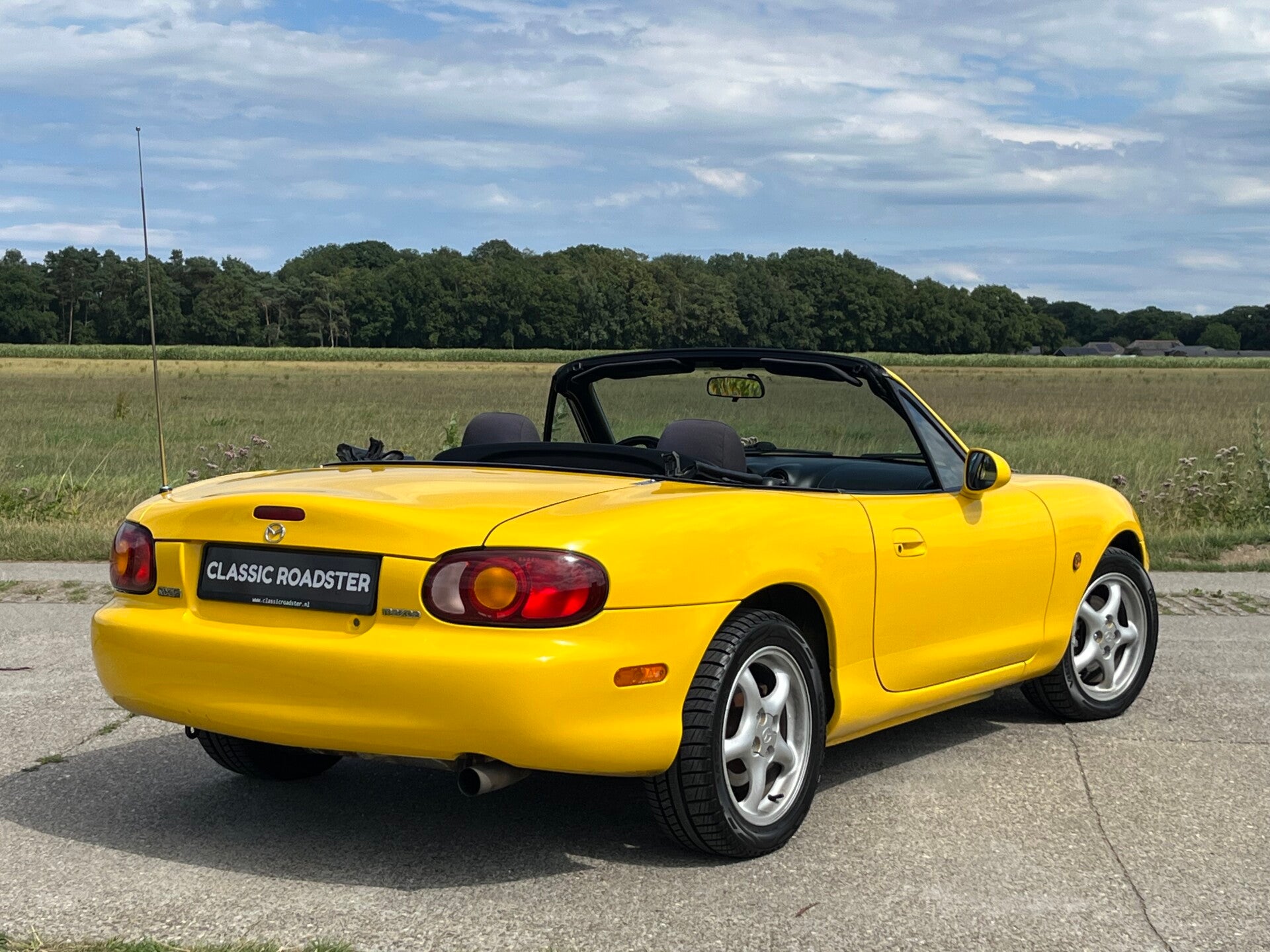 Een zeer zeldzame uitvoering van de bekende Mazda MX5 die in een nette staat verkeert! Deze prachtige NB is uitgevoerd in het geel met zwarte stoffen stoelen in combinatie met een zwart stoffen cabriodak. De California uitvoering heeft met de zeer zeldzame gele kleur te maken die enkel op deze uitvoering NB uitgebracht is!
