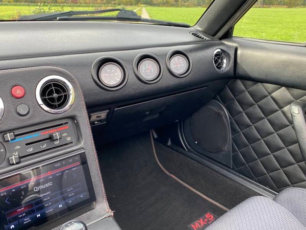 De afgelopen jaren heeft de vorige eigenaar de MX5 compleet naar zijn eigen smaak aangepast en dat is keurig gedaan. Hierbij een aantal van de upgrades, Rota lichtmetalen sportvelgen, een achterspoiler, verlagingsset, voorspoiler, touchscreen multimedia systeem, extra tellers, smokey lights, startknop, sideskirts, mistlampen en nog veel meer.... gewoon de moeite waard om bij ons te komen bekijken!