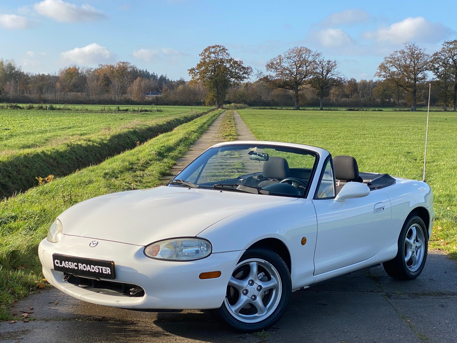 Een unieke Mazda MX5 NB te koop in het Crystal White uit 1998 met een zeer bijzondere kilometerstand!