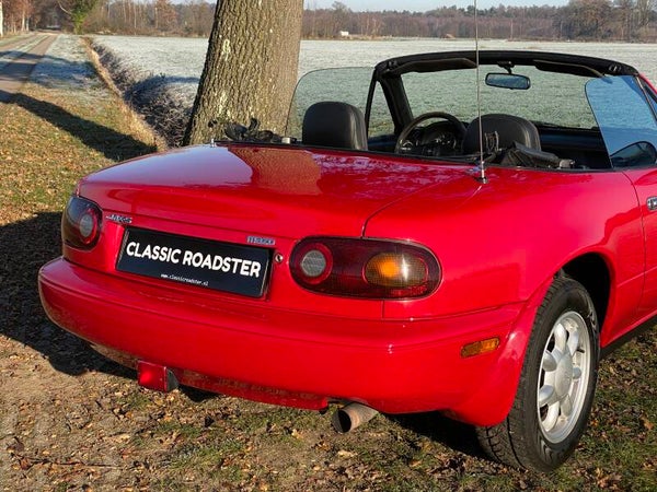 Een mooie, klassieke oer Mazda MX5 NA 1.6 te koop. In 1989 begon de productie van de best verkochte roadster ter wereld, de Mazda MX5. Deze auto is uitgevoerd in het Classic Red (de MX5 kleur!) met een zwart stoffen interieur en een zwarte vinyl/PVC cabriodak.