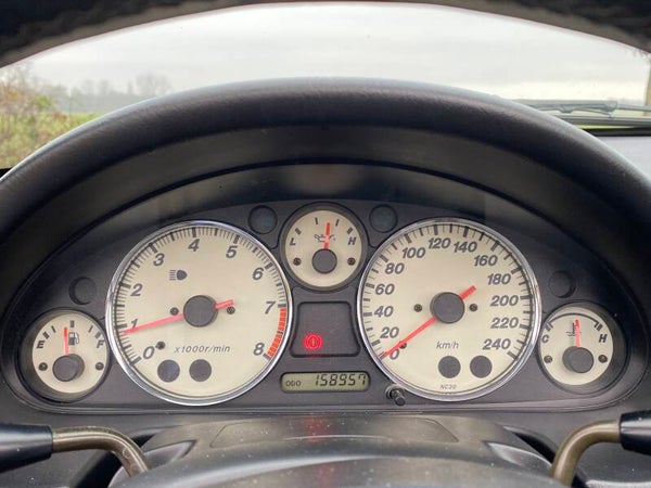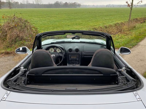 Een mooie Mazda MX5 NBFL 1.6 te koop. In 2001 kwam de facelift (FL) van de tweede generatie (NB) van de best verkochte roadster ter wereld. Deze MX5 is in januari 2001 voor het eerst geregistreerd in Duitsland en is in 2022 naar Nederland gekomen! Wij hebben de auto ingeruild op een Mazda MX5 NA die wij te koop hadden staan. De auto is uitgevoerd in een zilveren metallic lak met een zwart stoffen interieur.